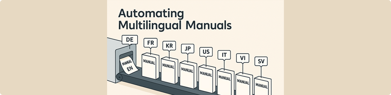 If your manuals need to be localized into 30, 40, or even 50+ languages, manual work alone cannot keep pace with production and launch timelines. Every small inefficiency or error multiplies across all languages and all document variants.