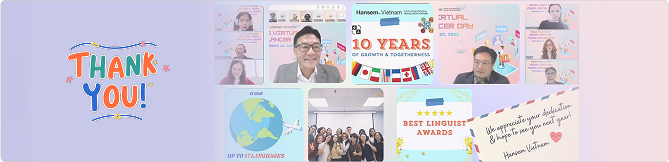 This year’s celebration was especially significant as it coincided with Hansem Vietnam’s 10-year anniversary. To honor a decade of growth and partnership, Freelancer Day 2025 was designed around a powerful theme: “Boosting Performance” – exploring how technology, tools, and human expertise can work together to shape the future of localization.