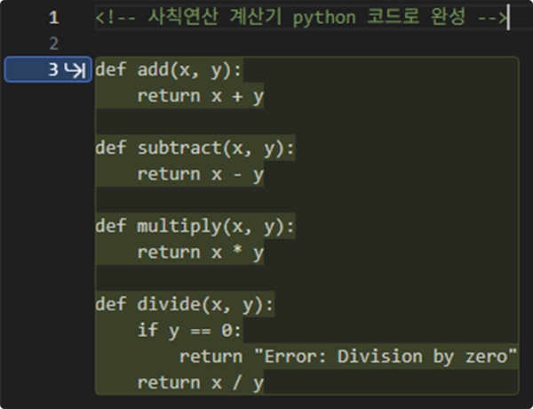 <Example> Recognizing the correction pattern in line 3, it suggests lines 4-6 with the same pattern structure (green area)