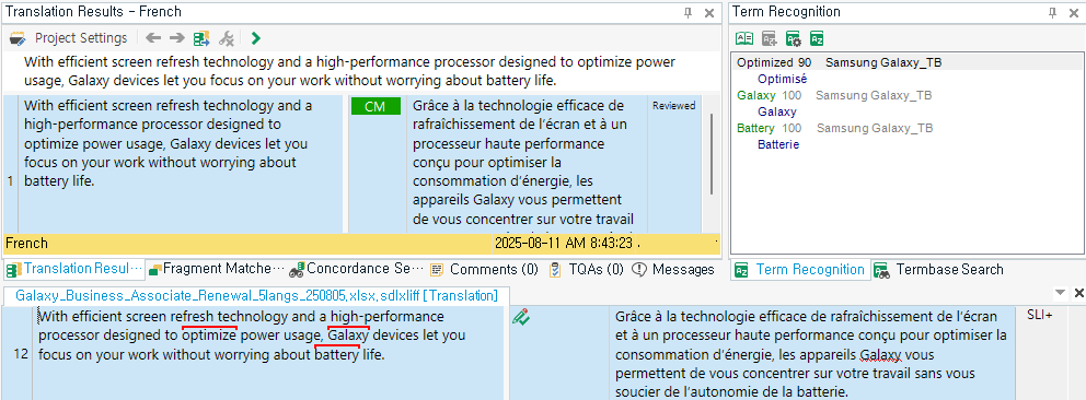 한샘글로벌은 최신 번역 관리 시스템(TMS)과 CAT(Computer-Assisted Translation) 도구를 적극 활용합니다. 이들을 통해 등재된 용어를 즉시 확인하고 정확히 적용할 수 있으며, 용어집과 상이한 번역이 이루어질 경우 번역가가 즉각 인지할 수 있도록 시스템상 경고 기능을 제공합니다. 이를 통해 번역 품질과 용어 일관성을 효과적으로 유지합니다.
